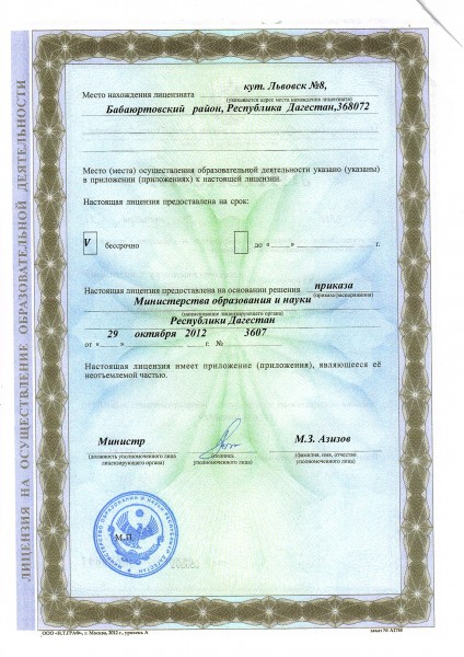 Адрес местонахождения образовательной организации* 368124, Республика Дагестан, Бабаюртовский район, п/о Львовский № 1, к. Львовский №8 Акушинского района.
