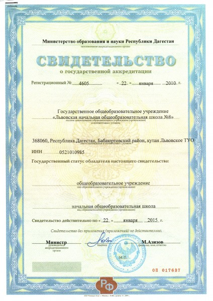 Свидетельство о государственной аккредитации